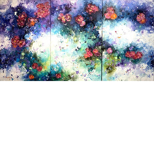 Technique utilisée : Peinture à l’huile sur toile de lin, principalement au couteau.